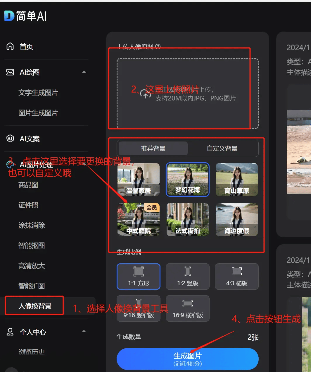 选择【人像换布景】→上传照片→选择想要改换的布景(也能够选自定义哦)→选择比例+数量-点击【生成图片】→下载若是你也受够修图到目炫、总被抠图逼疯——赶紧去尝尝!头发像被狗啃…此次我随手上传,会员年费高达298美元