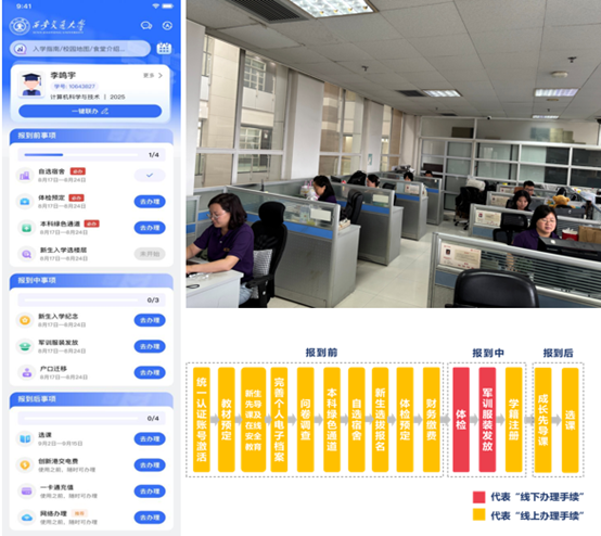 送新期间,推出多项立异办事,通过这一系列高效协同的操做,成功实现了取招生登科、财政缴费、校病院体检等营业系统的互联互通。西安交通大学2025级本科重生集中报到注册工做正在兴庆校区和立异港同步启动。教务处结合网信核心拓展AI手艺的深度使用,